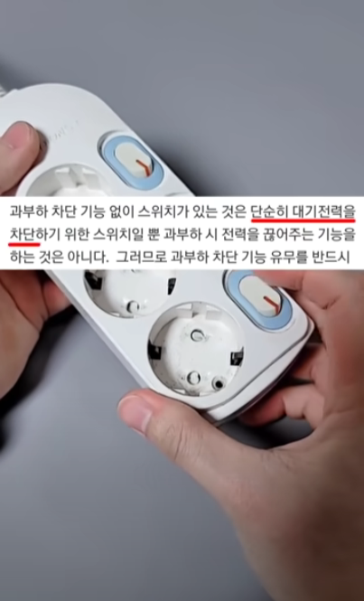 개별 스위치가 있는 멀티탭의 경우 과부하 차단 기능이 있다고 생각하기 쉽습니다.